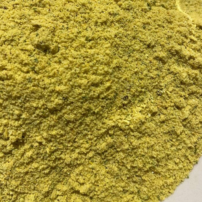 Sel de mer, farine de riz complet, légumes 11% (oignons 3.5%, carotte 3.4%, céleri, oignons grillés, panais), extrait de levure, huile de tournesol, curcuma, persil, macis, poivre, laurier, feuilles de livèche