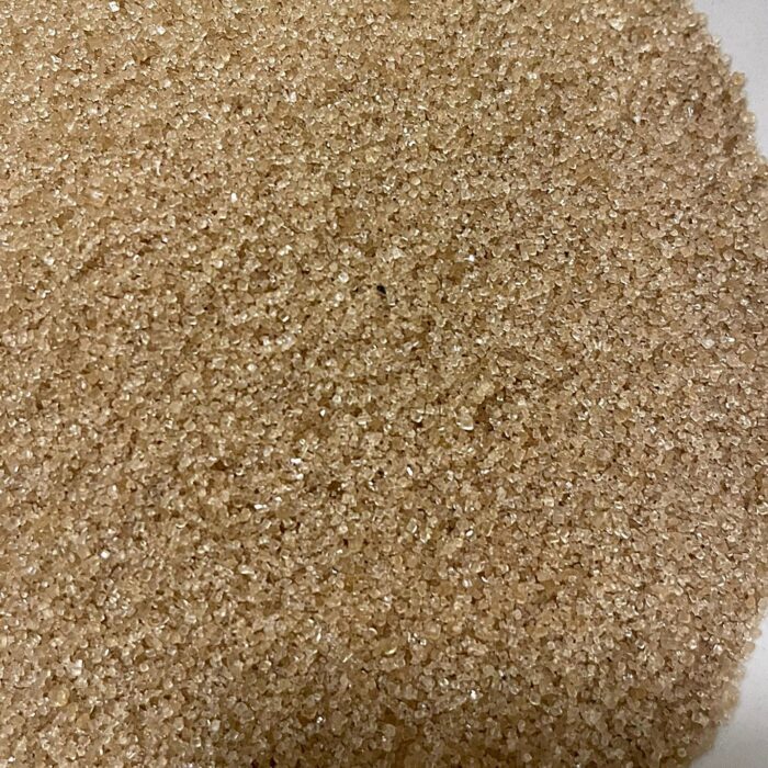 Sucre cristallisé, non raffiné, de couleur brun clair, avec une saveur douce.
