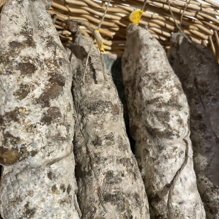 Un saucisson dont le goût se rapproche de la viande des grisons. Produit par Patrick, Martine et leur fils Anthony, dans leur ferme à Paladru, avec la viande de leur troupeau de race montbéliarde.