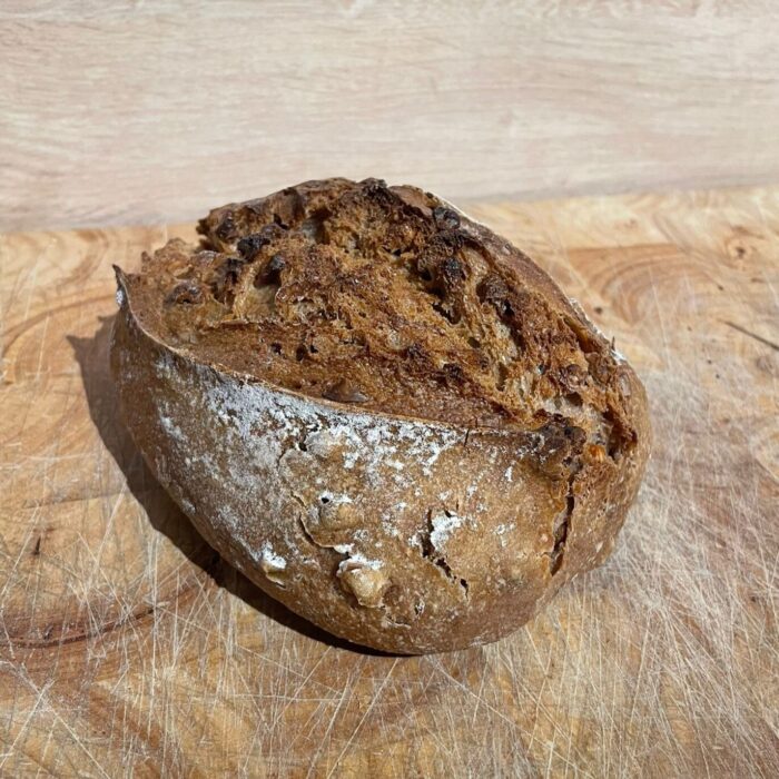 Farine de tradition T65, farine de seigle, noix, pâte fermentée, levain liquide, sel