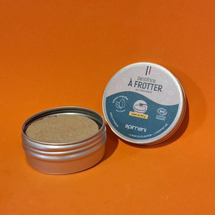 Ce dentifrice solide contient un pavé de 40g au bon goût de menthe, de quoi vous brosser les dents pendant environ 2 mois, au rythme de 2 brossages par jour. Et ce n’est pas tout, il est maintenant certifié bio et les ingrédients qui le composent sont sains et à plus de 98 % d’origine naturelle. Bref, c’est THE alternative écologique qui réduira drastiquement les déchets plastiques dans votre salle de bain. En d’autres termes, vous avez devant vous l’avenir même du dentifrice. De plus, pour aller encore plus loin dans la démarche, sachez que la boîte en aluminium qui renferme notre dentifrice solide est réutilisable et rechargeable. On vous propose deux possibilités pour recharger votre nouveau dentifrice : soit en achetant une recharge en sachet individuel sur notre site internet. Mais vous pouvez aussi les retrouver en vrac chez nos fidèles revendeurs : voici les magasins les plus proches de chez vous. Dites adieu aux tubes en plastique à usage unique ! Car oui, opter pour ce dentifrice solide, c’est franchir une étape de plus vers une salle de bain sans déchet. Parfait pour les voyages, même les déplacements quotidiens, la boîte métallique facilite le transport de votre dentifrice où que vous alliez, sans risque de tacher l’intérieur de votre belle trousse de toilette. Il est costaud ce dentifrice !